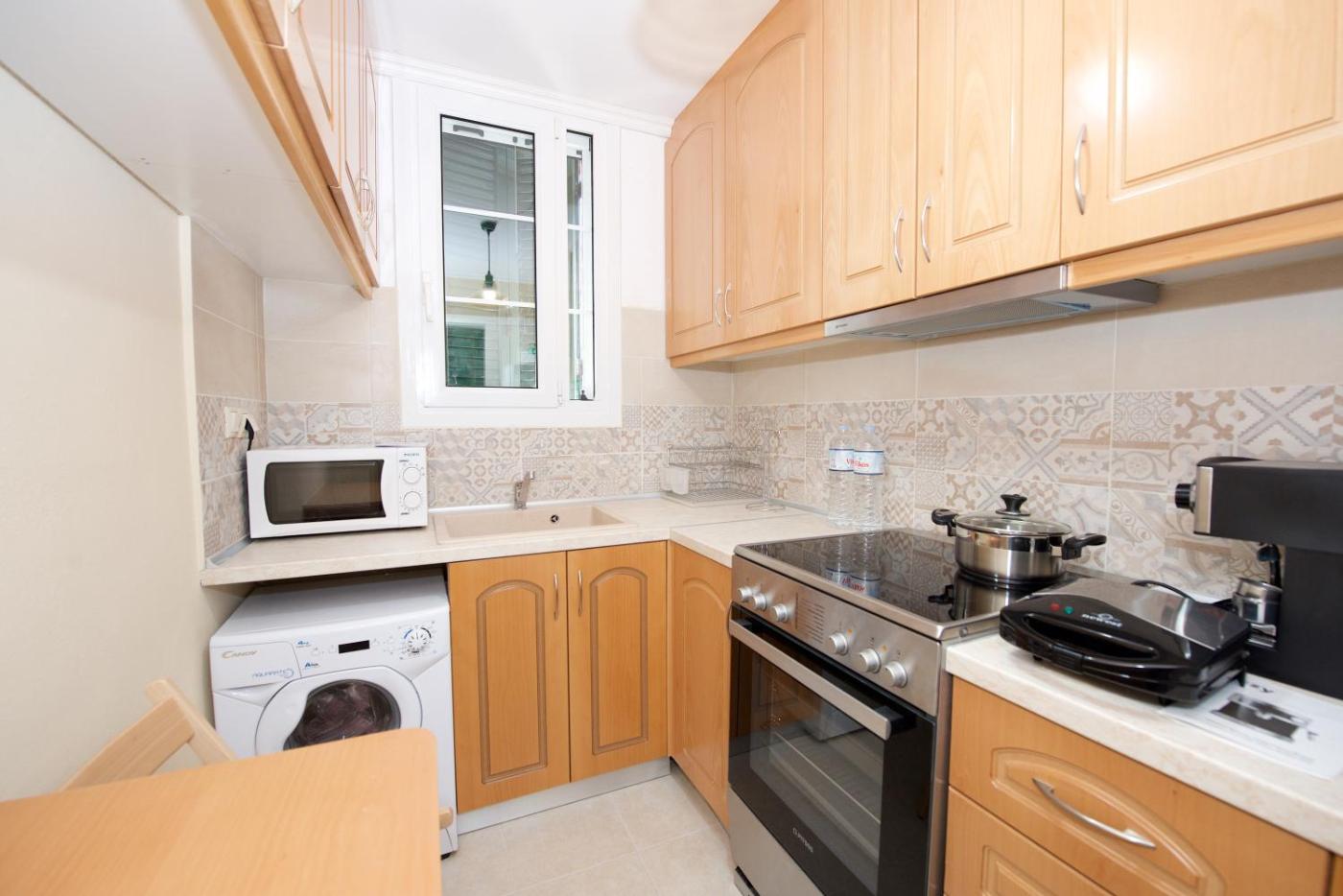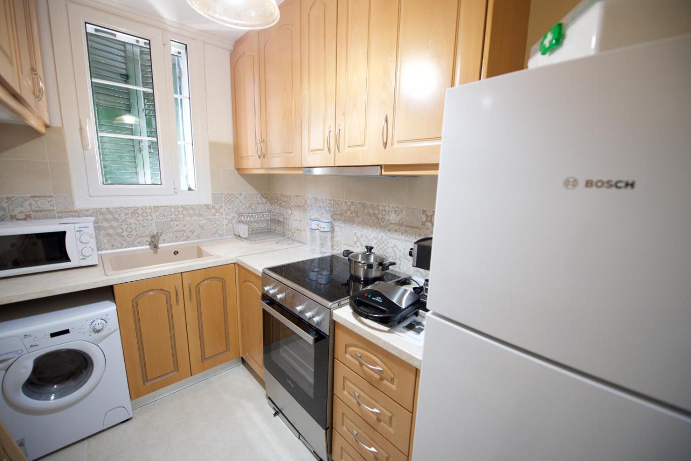 One-Bedroom Apartment. This apartment features 1 living room, 1 separate bedroom and 1 bathroom with a shower and free toiletries. Meals can be prepared in the well-fitted kitchen, which has a stovetop, a refrigerator, an oven and a toaster. This apartment is air-conditioned and has a seating area with a flat-screen TV, a washing machine, a coffee machine, a dining area, as well as a sofa. The unit has 2 beds.