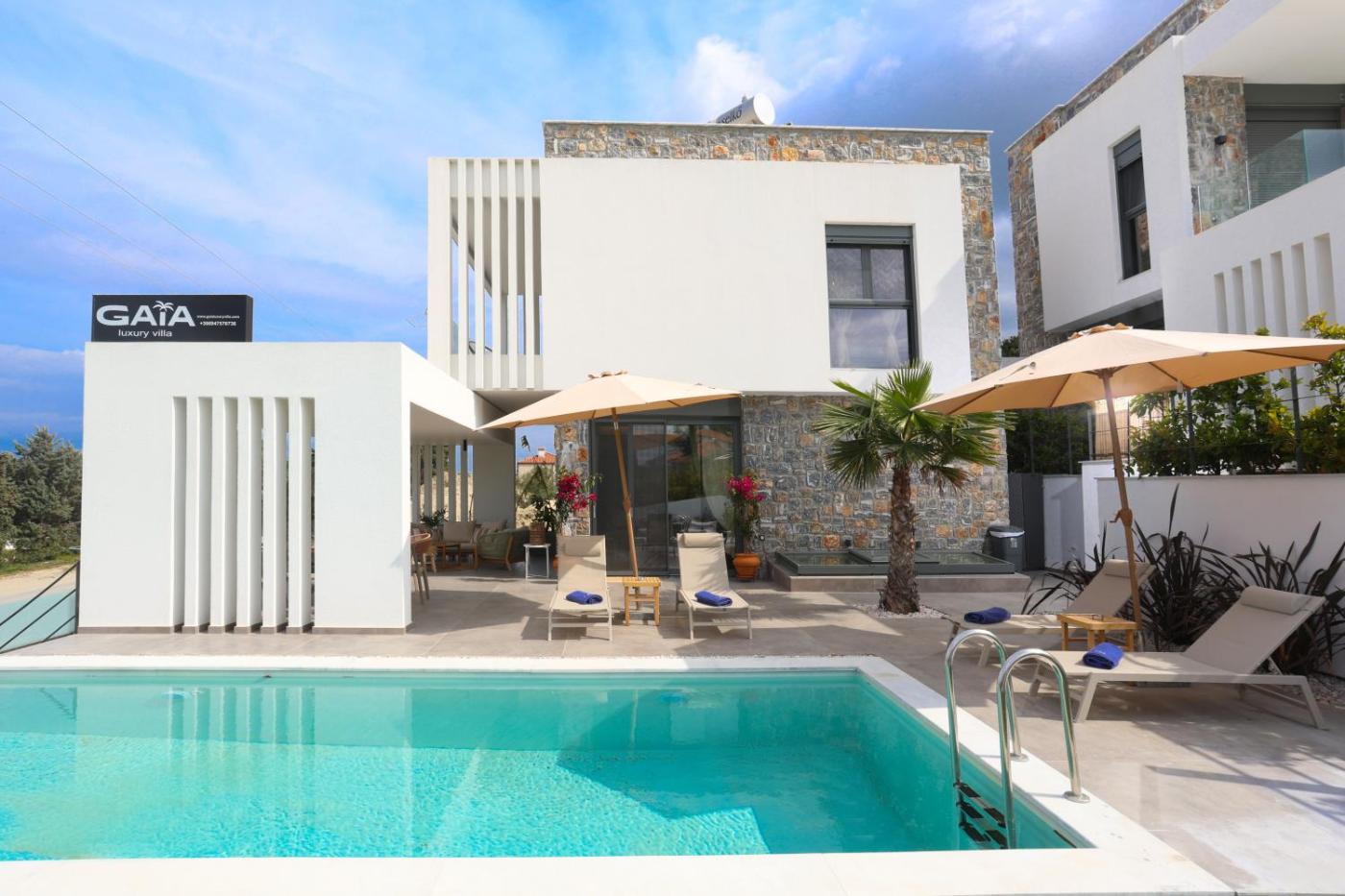 Boasting air-conditioned accommodation with a private pool, pool view and a patio, GAIA Luxury Villa is situated in Pefkohori. This property offers access to a balcony, free private parking and free WiFi. Outdoor seating is also available at the villa.