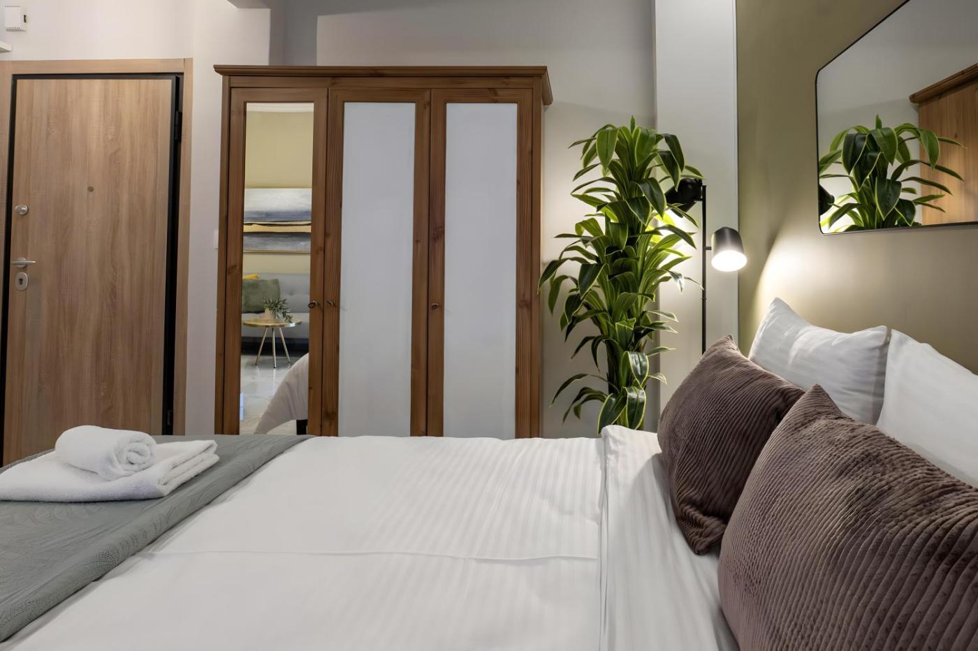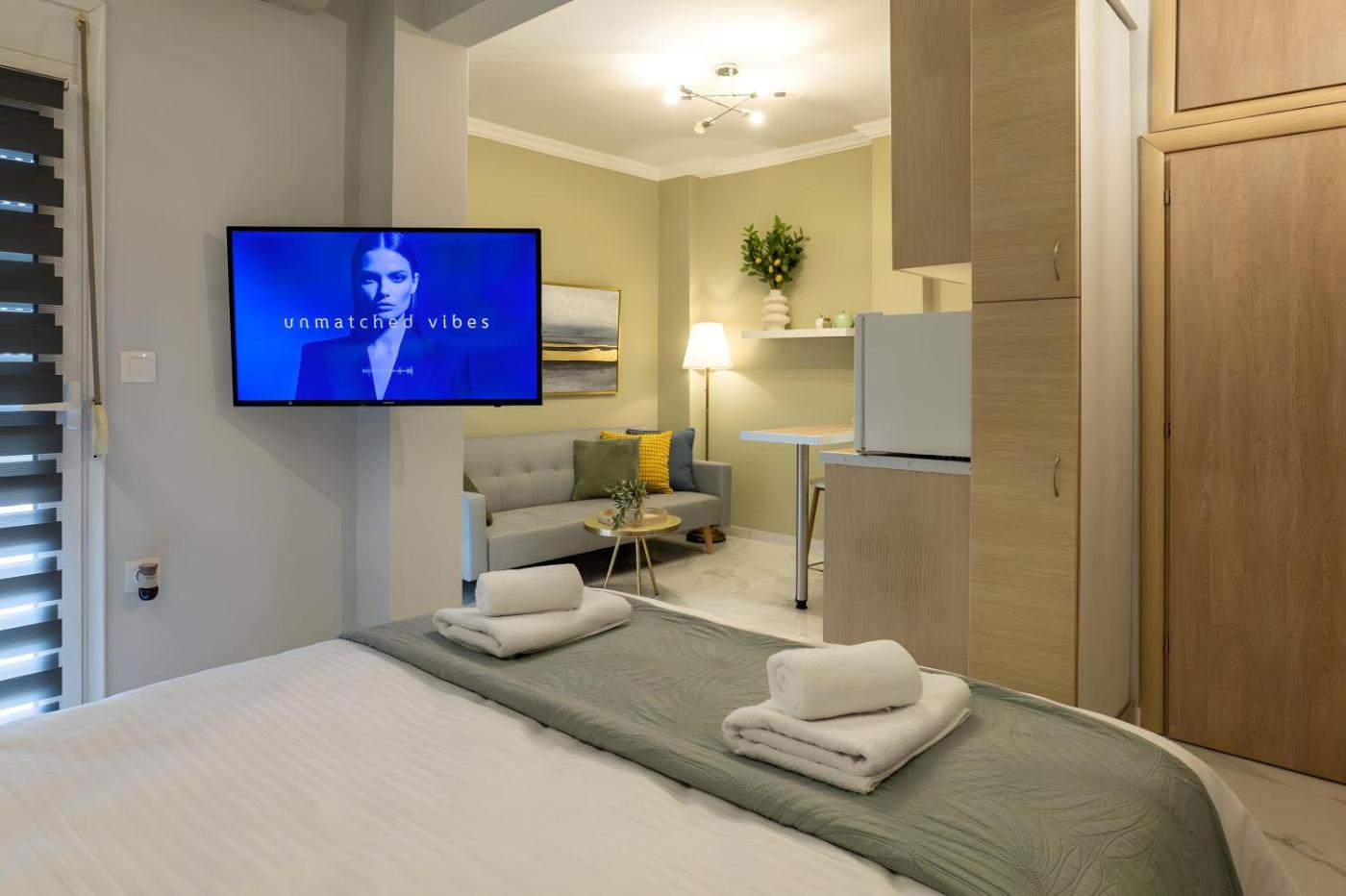 One-Bedroom Apartment. Featuring a private entrance, this air-conditioned apartment comprises 1 living room, 1 separate bedroom and 1 bathroom with a shower and a hairdryer. The well-fitted kitchen has a stovetop, a refrigerator, kitchenware and an oven. The apartment features tiled floors, a seating area with a flat-screen TV, a washing machine, soundproof walls as well as city views. The unit offers 2 beds.